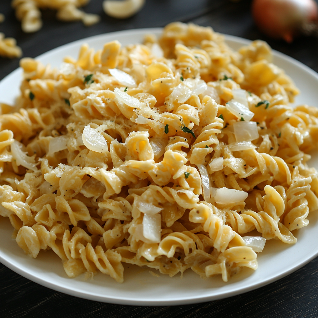 Состав: макароны, яйца куриные, лук репчатый, сливочное масло, соль