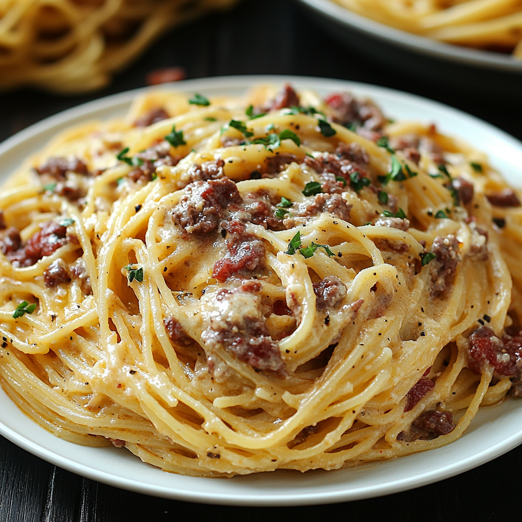 Спагетти с говядиной в сливочном соусе (1кг.)
