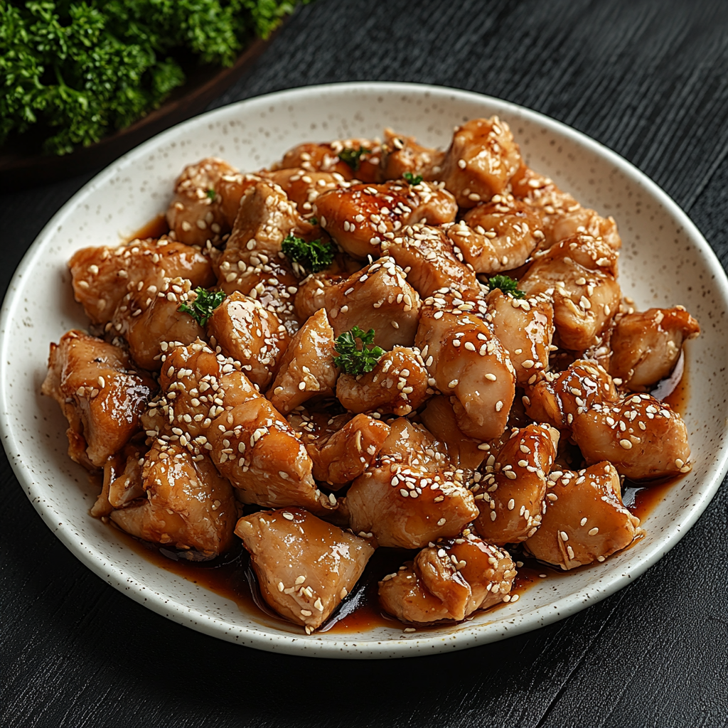 Состав: филе куриного бедра, перец сладкий, соус терияки, лук репчатый, кунжут, масло подсолнечное, паприка, соль