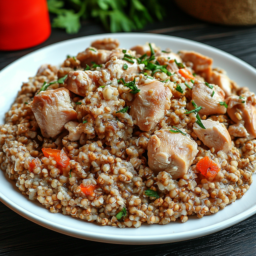 Состав: куриная грудка, гречневая крупа, морковь, лук репчатый, масло подсолнечное, соль