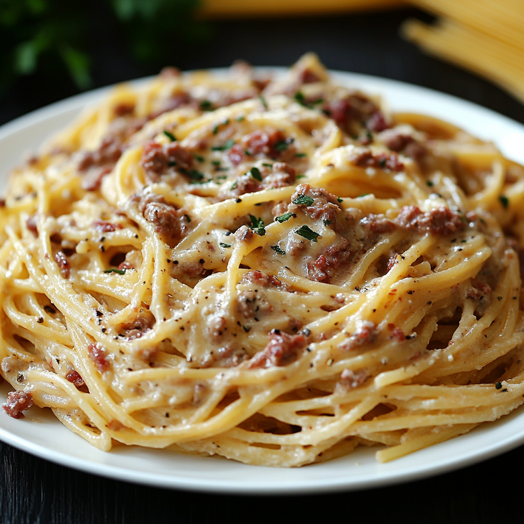 Спагетти с куриной грудкой в сливочном соусе (1 кг.)