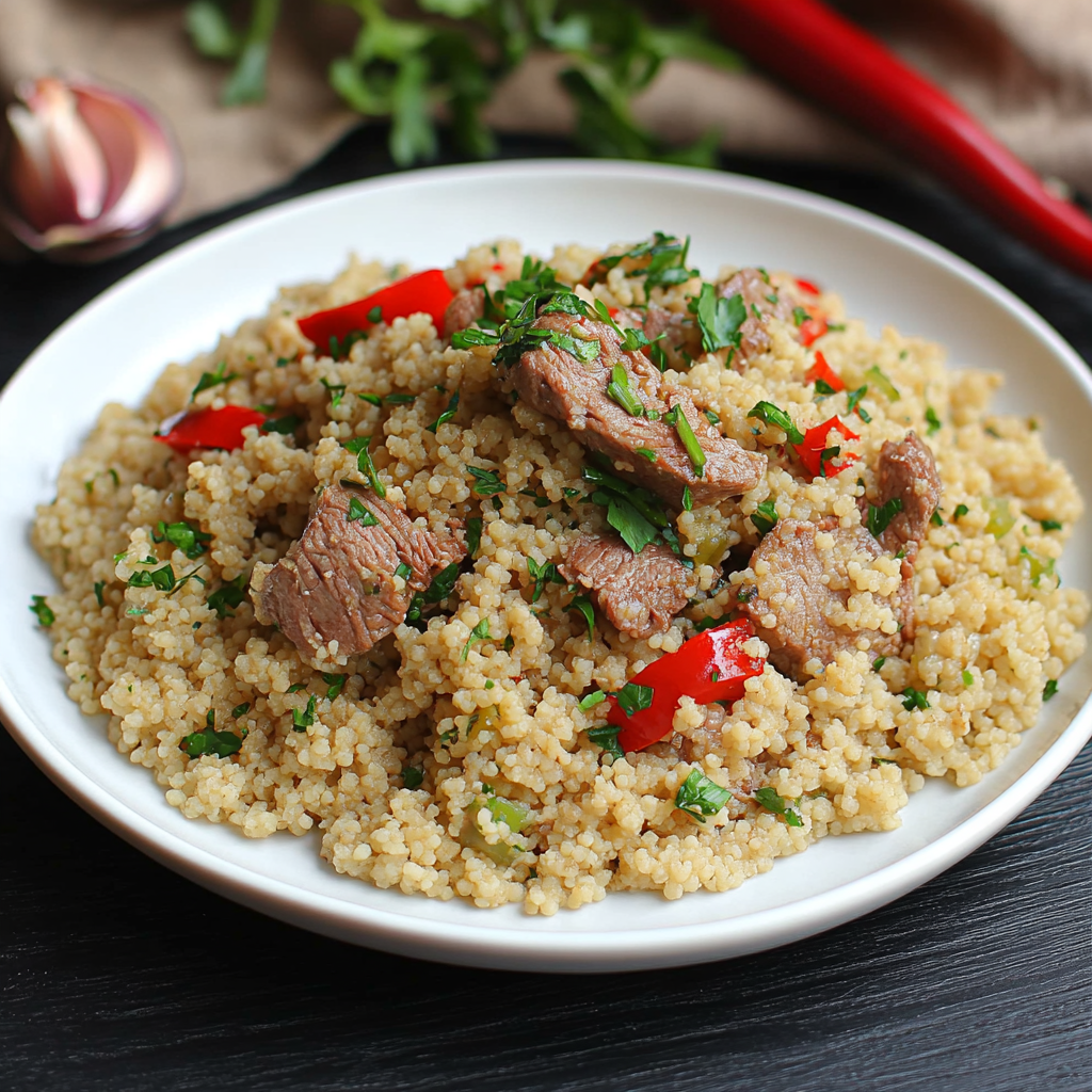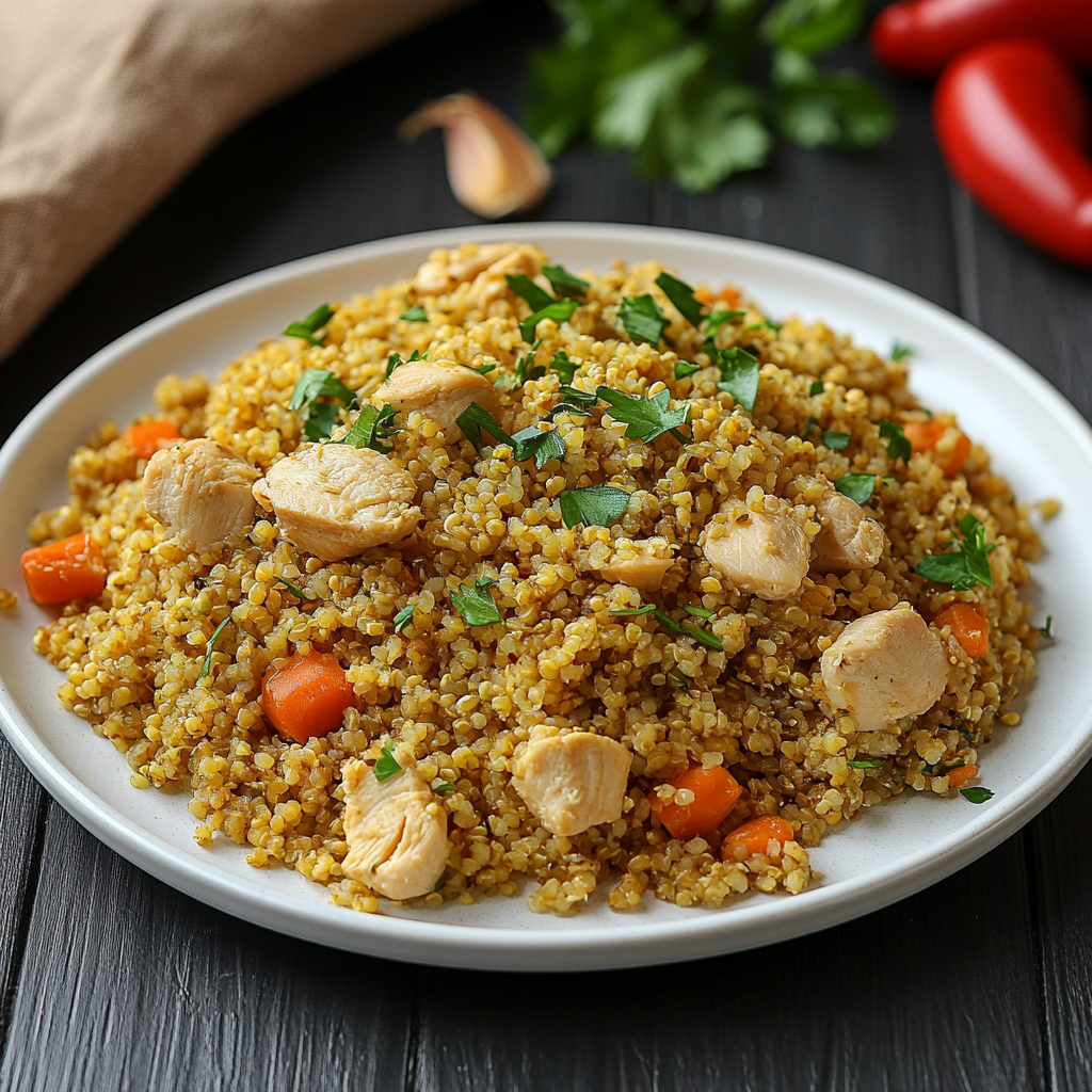 Состав: куриная грудка, крупа кускус, морковь, лук репчатый, масло подсолнечное, соль