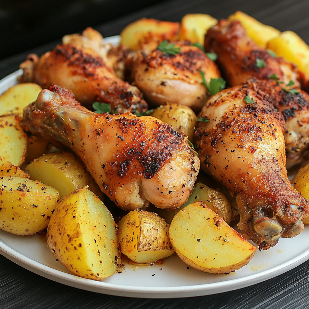 Состав: куриные окорочка, картофель, лук репчатый, масло подсолнечное, соль