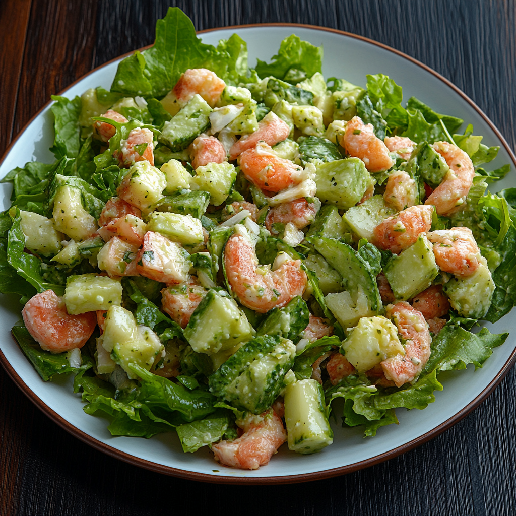Состав: креветки, авокадо, огурец свежий, яйца куриные, майонез, соль